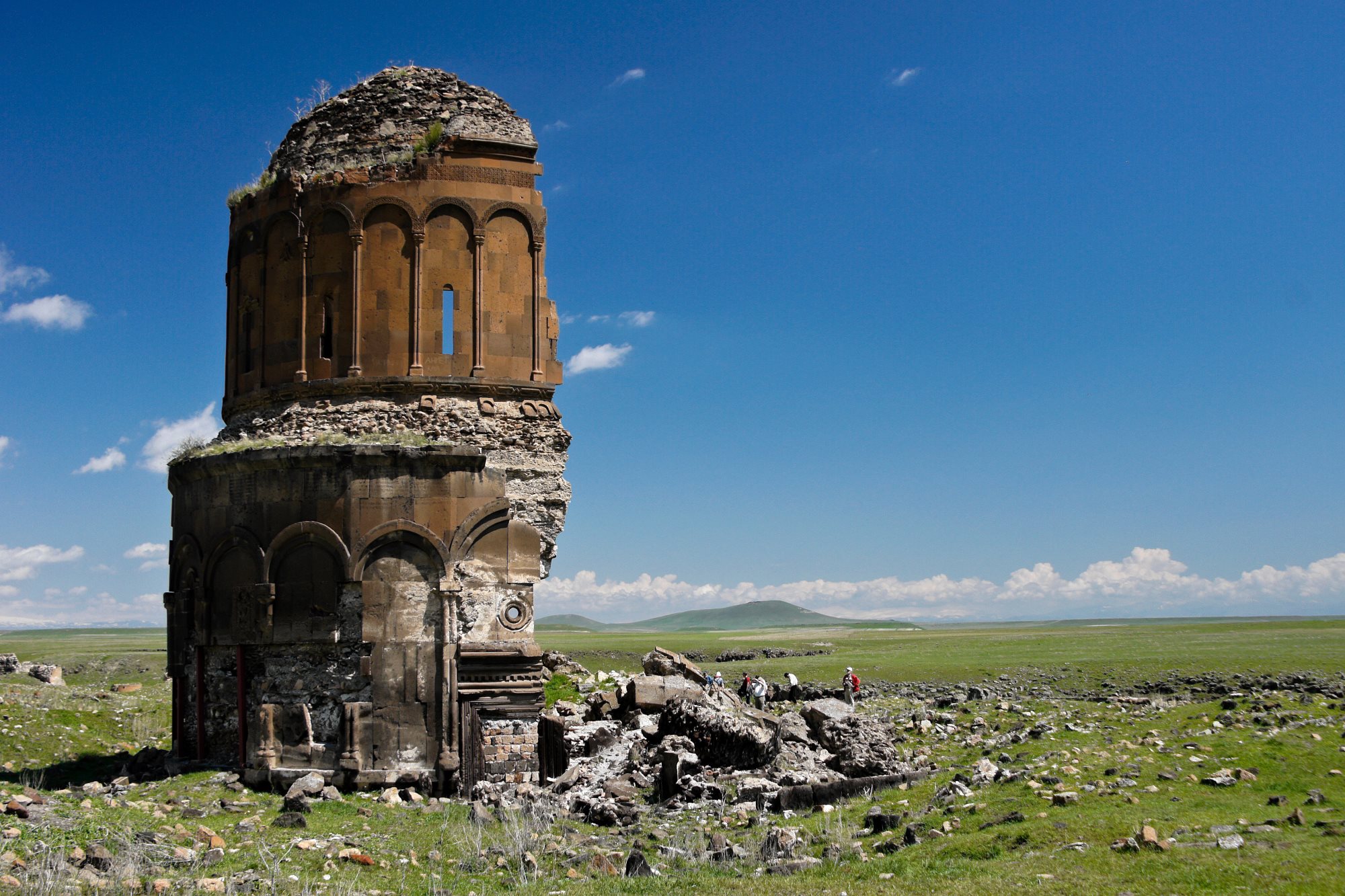 トルコ北東部にある『アニの考古遺跡』は、アルメニアとの国境に近い高原に築かれた中世の都市遺跡です。深い渓谷に囲まれたエリアにあり、住居・教会・城壁などが残っています。10~11世紀にはアルメニア王国バグラトゥニ朝の首都として栄え、シルク・ロードの支線を押さえたことで交易の中心地となりました。その後、ビザンツ帝国やセルジューク朝などに支配され、多文化が交わる都市として発展しますが、モンゴルの侵入と1319年の大地震で衰退しました。このアニでは、アルメニア、ジョージア、イスラムの文化が融合した独自の建築様式が生まれ、中世建築の発展を一望できる貴重な遺跡となっています。現在では、多様な建築技術や都市計画を学べる場所として、歴史や考古学を学ぶ学生にとっても重要な研究対象となっています。