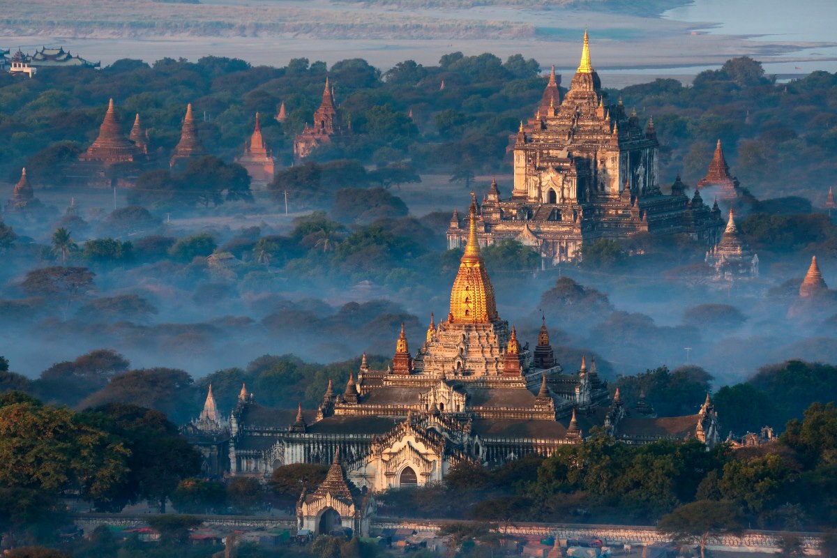 ミャンマーのエーヤワディー川沿いに位置するバガンは3,000以上の仏塔(パゴダ)が立ち並んでおり、カンボジアのアンコールワットとインドネシアのボロブドゥールと並んで世界三大仏教遺跡の一つに数えられています。上座部仏教の功徳を得るために数多くの仏塔が建設され、他に例を見ない仏教芸術と仏教建築の神聖な景観が構築されていきました。構成資産には仏塔だけでなく、寺院やフレスコ画、考古遺跡や彫刻も含まれています。