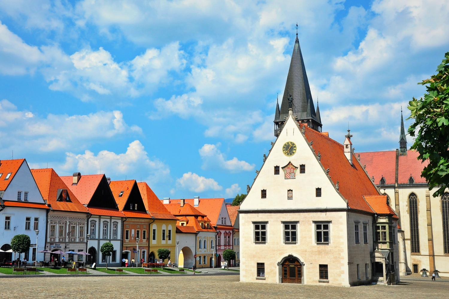 市庁舎広場を中心とした、オレンジの屋根を持つ旧市街