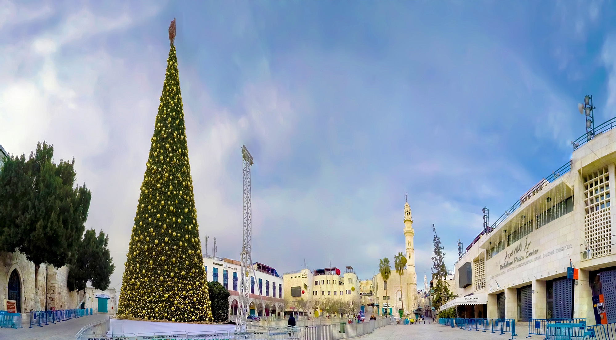 ベツレヘムでは毎年、聖誕教会前の広場に巨大なクリスマスツリーが設置され、イルミネーションの点灯式が催されてきました。そこにはクリスマスを祝い楽しむたくさんの人々の姿がありましたが、2023年10月に起きたガザ地区での紛争により状況は一変。祝賀行事は軒並み中止となり、閑散としたクリスマスが2年続きました。しかし2025年10月の停戦を受けて、同年のクリスマスでは3年ぶりに点灯式が開催されました。