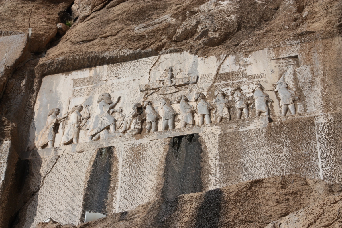 ベヒストゥン碑文。左から3番目の人物がダレイオス1世