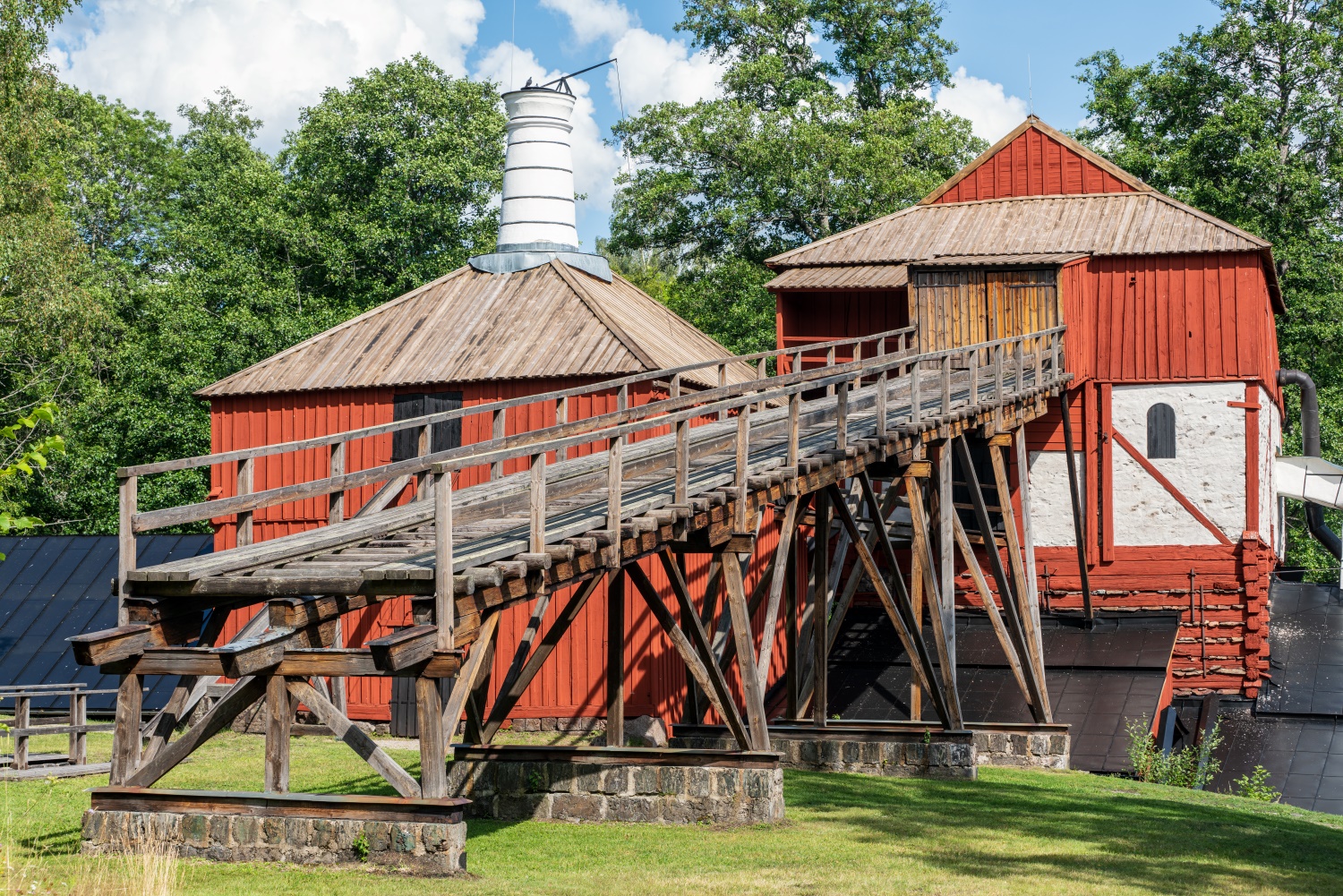 スウェーデン、ヴェストマンランド地方にある『エンゲルスベリの製鉄所』は、17~19世紀にかけてスウェーデンの鉄鋼産業に多大な影響を残しました。ここは、スウェーデンの基幹産業が、鉄鉱石の採掘、製鉄となるに至る歴史を伝える場所です。12世紀に農業活動を補うために、この地で鉄鉱石の採掘、製錬のための工場建設が始まりました。そして18世紀末には、鉱石粉砕機や炭貯蔵庫、そして現在も残る高炉などが当時の最新技術で導入され、生産量が大幅に増加します。しかし、技術の進歩に追いつけず、最終的には1919年に操業を停止しました。現在では高炉の他に、検査官の家や庭師の家、工場主の木造家屋など50軒以上の建物がほぼ完全な形で保存されています。