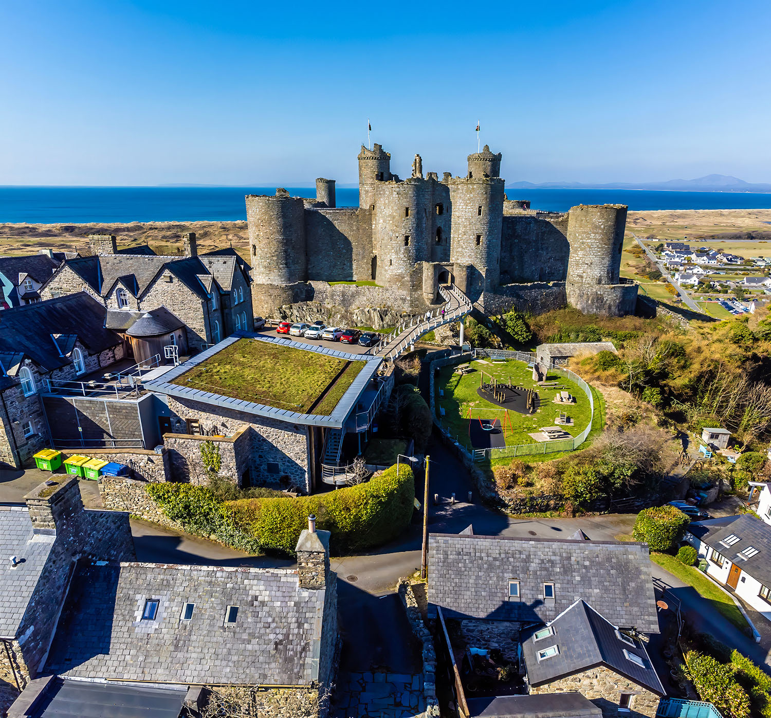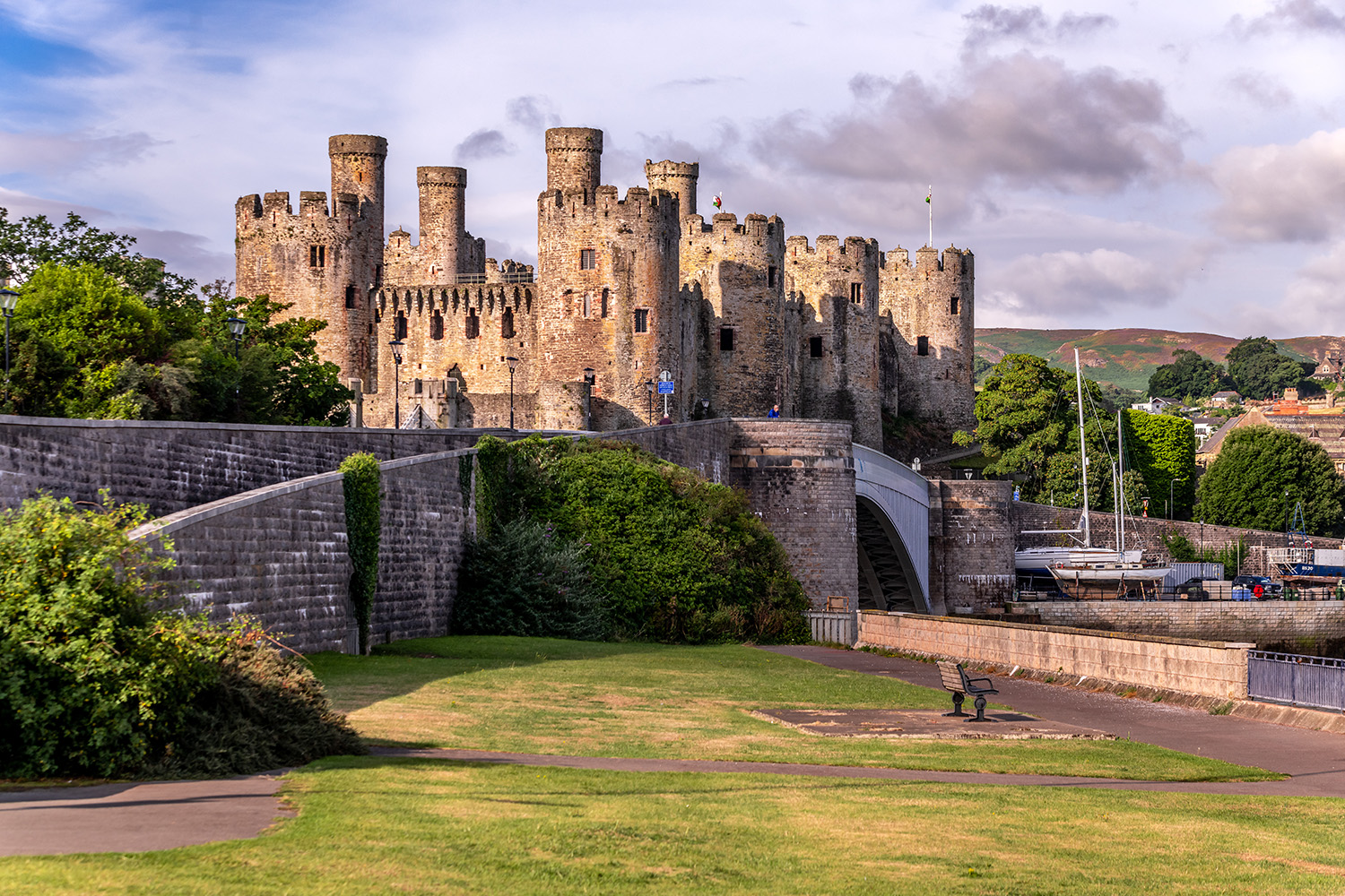 13世紀後半から14世紀初期にかけて北ウェールズのグウィネズに築かれた、ボーマリス城とハーレフ城、カーナーヴォン城と市壁、コンウィ城と市壁の4つの城と2つの市壁が世界遺産に登録されています。この一帯は、かつてグウィネズ王国が置かれた場所でした。イングランド王のエドワード1世は1277年と1282~1284年にかけてウェールズに侵攻すると、最後まで激しく抵抗したこの地に抵抗を抑えるための城と市壁を築き始めました。王の命令でウェールズ一帯に築かれた城郭群は「アイアン・リング(鉄の輪)」と呼ばれています。世界遺産に登録されている4つの城は、王に仕えた軍事建築家のジェームズ・オブ・セント・ジョージによるもので、中でもボーマリス城とハーレフ城は傑作と称されています。