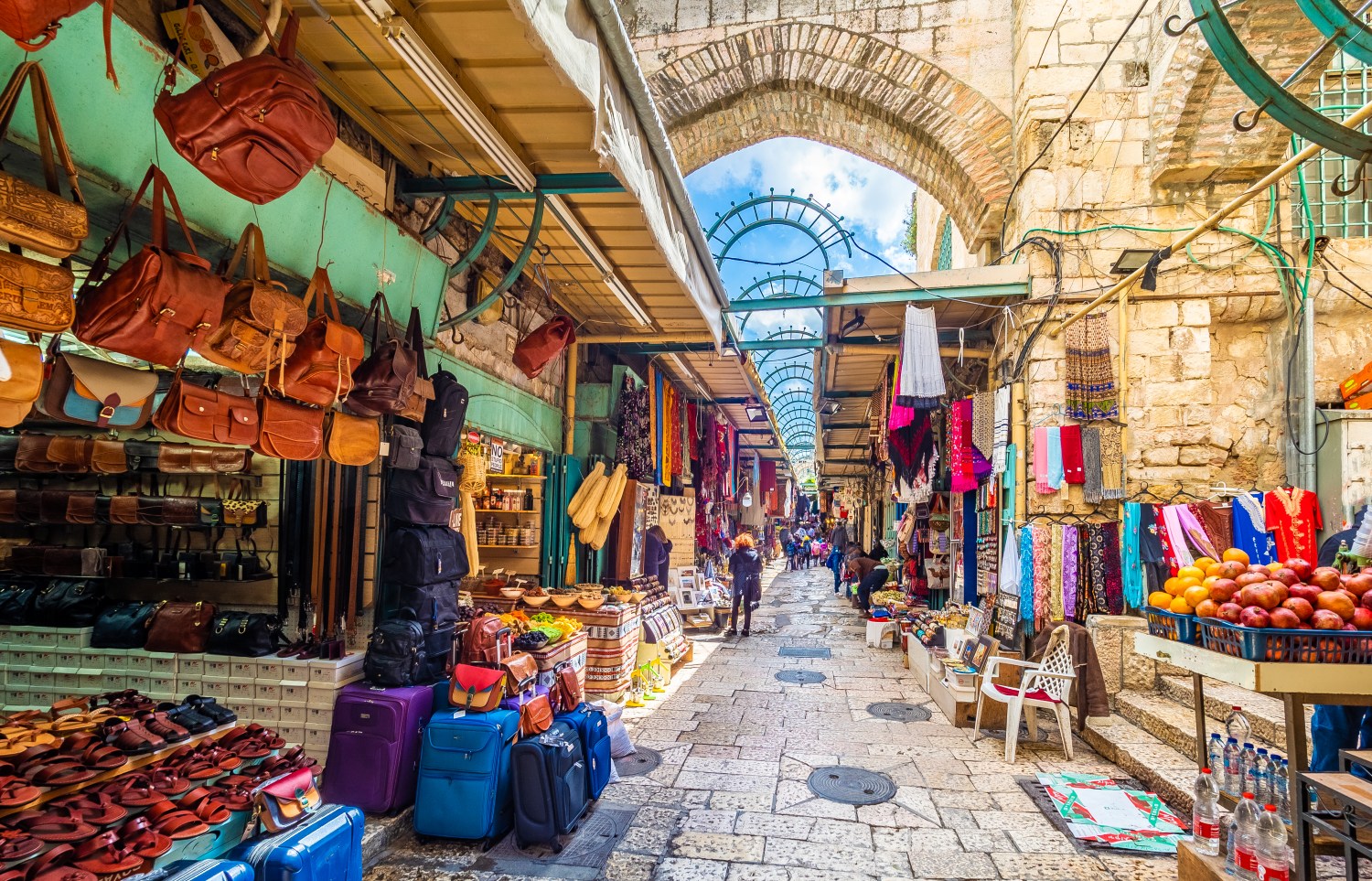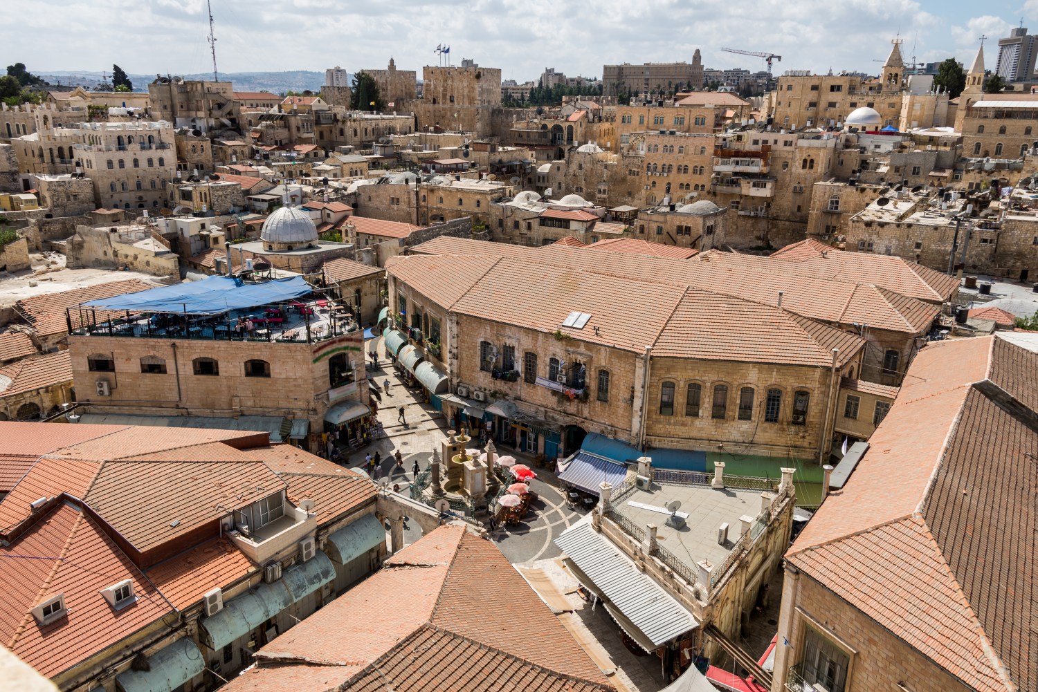 旧市街では主にユダヤ教、キリスト教、イスラム教、アルメニア正教の4つの宗教を信仰する人々がそれぞれの街区に分かれて生活しています。最も広いのは、旧市街の北東部に位置するイスラム教徒地区です。街区にはモスク以外にも、キリスト教の教会や、死刑判決を受けたイエス・キリストが十字架を背負い、刑場のゴルゴタの丘まで歩いたとされる「ヴィア・ドロローサ(悲しみの道)」の一部区間が存在しています。イスラム教徒地区の西隣、旧市街の北西部には、キリスト教徒が暮らす街区があります。聖墳墓教会をはじめ、ヴィア・ドロローサの一部などがあり、世界中からさまざまな教派のキリスト教徒が集まります。旧市街の南部にはユダヤ人街区が広がります。神殿の丘の南西に隣接し、「嘆きの壁」やシナゴーグなどがあります。4つの街区では最も面積が小さいのは、旧市街の南西部にあるアルメニア正教徒の街区です。アルメニアは世界で初めてキリスト教を国教とした国であり、エルサレムには4世紀頃からアルメニア人が暮らしてきました。12世紀創建の聖ヤコブ主教座聖堂は、十二使徒の1人である大ヤコブが殉教した地に建てられたと伝わります。旧市街には宗教施設以外に市場や商店、レストラン、学校、ホテル、土産物屋が多数あり、人々の生活の場となっています。特にダマスカス門から神殿の丘や聖墳墓教会へと向かう道は、土産物と衣服の店がずらりと軒を連ね、活気のある通りとなっています。