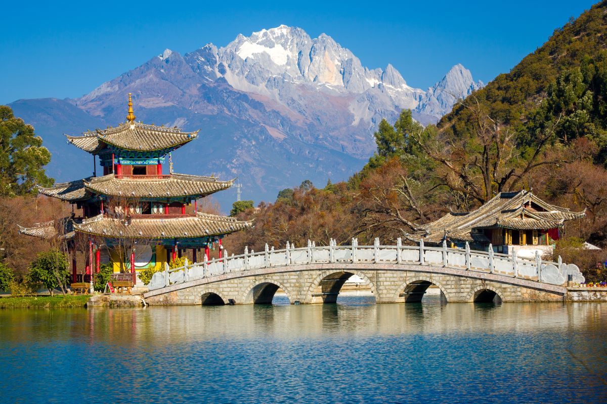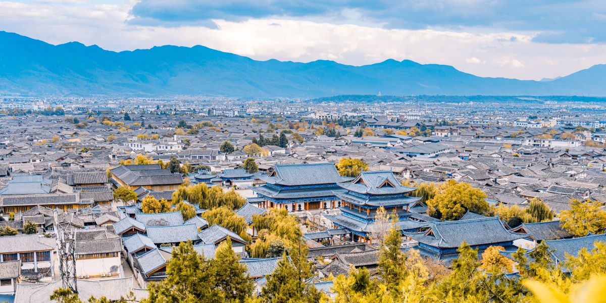 万年雪が積もる標高5,596mの玉龍雪山麓にある高地の街