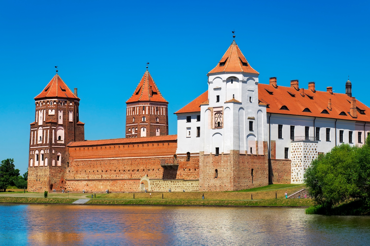 ミール城は、ベラルーシに位置する、中世から近世にかけての中央ヨーロッパの政治的・文化的対立と融合を物語る、類いまれな城塞です。15世紀末にゴシック様式で建設が始まり、その後ルネサンス様式やバロック様式の影響を受けて拡張・再建されました。その建築様式の中に、ゴシック様式の堅牢さと、ルネサンス様式の洗練された優雅さ、そしてバロック様式の装飾的な要素が調和して共存しています。